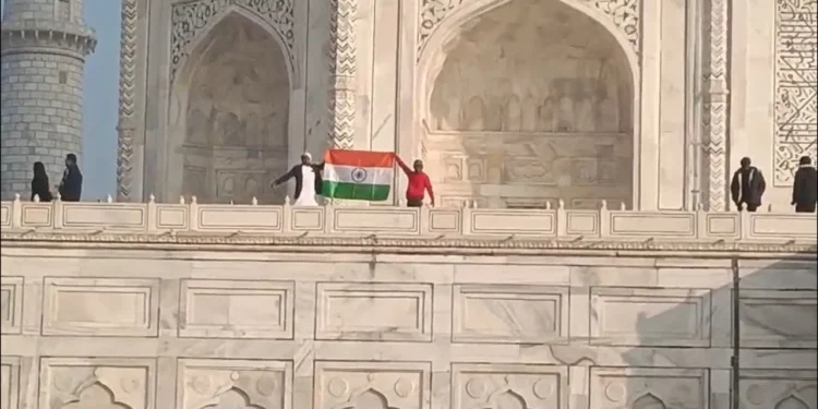 ताजनगरी आगरा से आज एक बेहद चौंकाने वाली और बड़ी खबर सामने आई है. गणतंत्र दिवस के अवसर पर विश्व प्रसिद्ध स्मारक ताजमहल के परिसर में राष्ट्रीय ध्वज तिरंगा फहराया गया और सामूहिक रूप से राष्ट्रगान गाया गया. इस घटना का वीडियो सोशल मीडिया पर वायरल होने के बाद प्रशासनिक गलियारों में हड़कंप मच गया है.