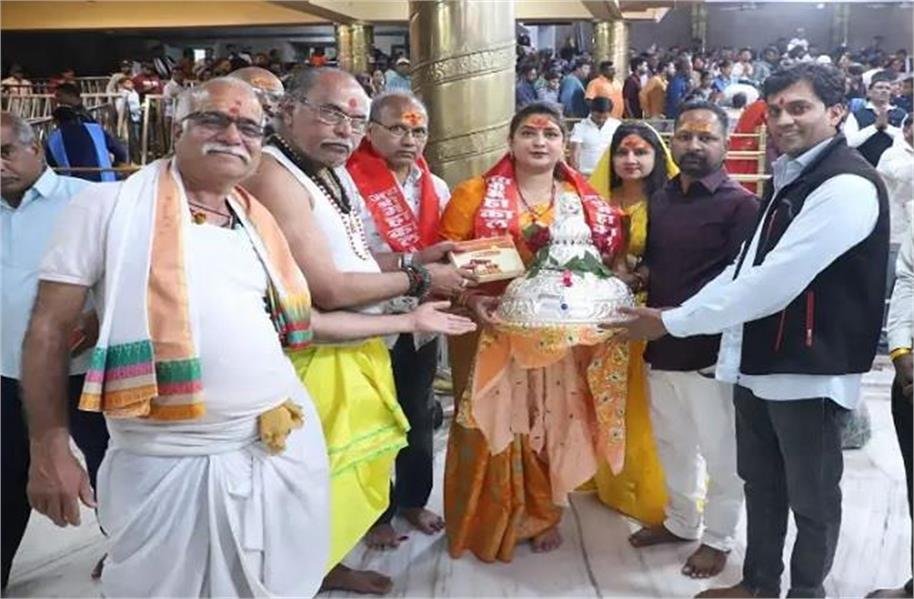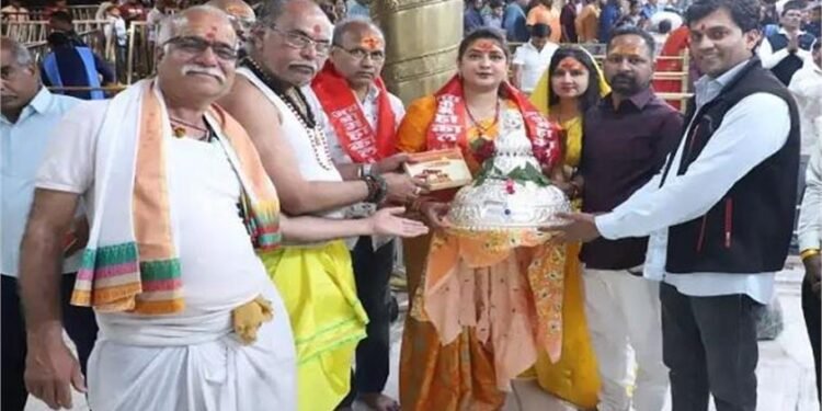 उज्जैन : सोमवार को मध्य प्रदेश के उज्जैन जिले में श्री महाकालेश्वर मंदिर में एक भक्त ने बाबा महाकालेश्वर को 2 किलो 350 ग्राम का चांदी का मुकुट चढ़ाया, जिस पर चांद बना हुआ था। गुजरात के जामनगर के रहने वाले भक्त प्रदीप गुप्ता ने अपनी मन्नत पूरी होने के बाद यह मुकुट भेंट किया। उन्होंने बाबा महाकालेश्वर की भस्म आरती में हिस्सा लिया और समारोह के दौरान भगवान महाकाल को चांदी का मुकुट चढ़ाया। मंदिर के पुजारी ने सोमवार को भस्म आरती के दौरान बाबा महाकालेश्वर को यह नया मुकुट पहनाया।