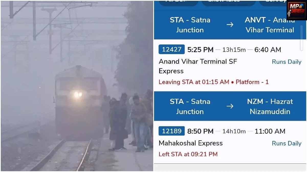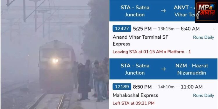 इधर कोहरें की वजह से अपने निर्धारित से समय बाहर से घंटे से ज्यादा समय से देरी चलने की वजह से सतना जंक्शन के प्लेटफार्म नंबर एक से अपने निर्धारित समय पांच बजकर पच्चीस मिनट पर आनंद विहार के लिए प्रस्थान करने वाली रीवा-आनंद विहार एक्सप्रेस ‘रेवांचल एक्सप्रेस’ गई ही नहीं यानि रेलवे के मुताबिक शाम पांच बजकर पच्चीस मिनट पर गुजरने वाली रेवांचल एक्सप्रेस आज रात करीब एक बजे के बाद ही आनंद विहार के लिए प्रस्थान करेंगी।
