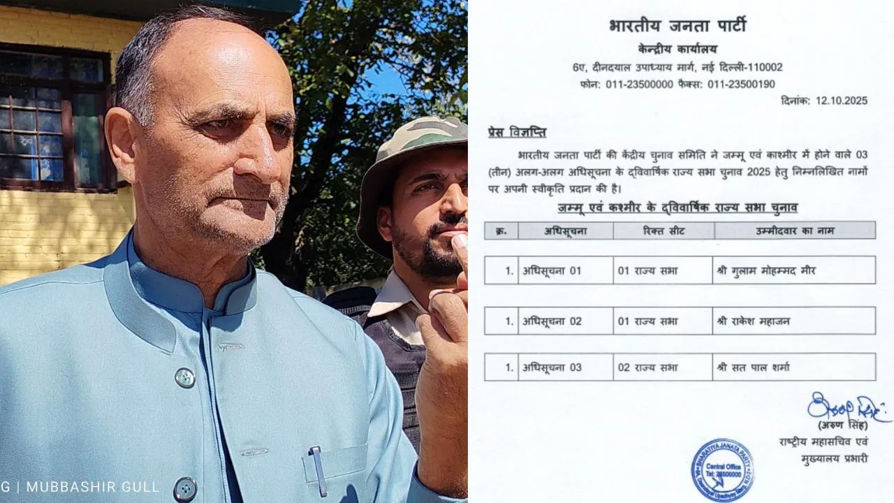 जम्मू कश्मीर की चार राज्यसभा की सीटों पर चुनाव होने वाला हैं, जिसके लिए राजनीतिक पार्टियों ने तैयारियां शुरू कर दी है. भाजपा ने रविवार को 24 अक्टूबर को होने वाले चुनाव के लिए अपनी जम्मू-कश्मीर इकाई के अध्यक्ष सतपाल शर्मा सहित तीन उम्मीदवारों का ऐलान किया.