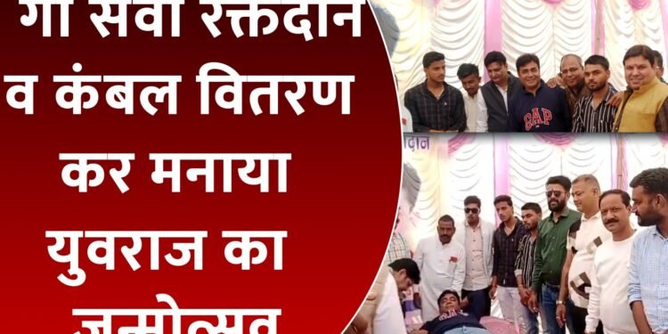 गौ सेवा, रक्तदान व कंबल वितरण कर मनाया युवराज का जन्मोत्सव