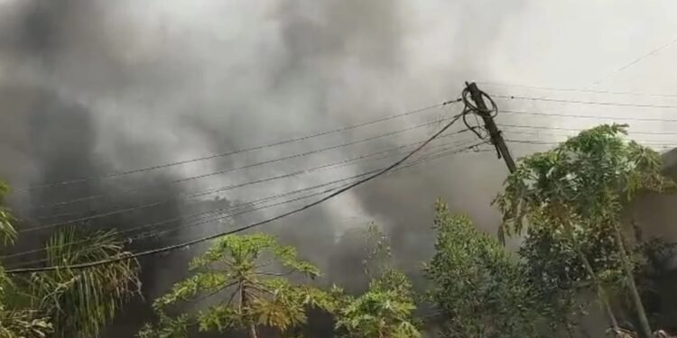 पुलिस और प्रशासनिक अमला भी मौके पर मौजूद है और सुरक्षा व्यवस्था संभाल रहा है। आग लगने की खबर फैलते ही आसपास के क्षेत्रों से लोगों की भारी भीड़ घटनास्थल पर जमा हो गई। फिलहाल आग लगने के कारणों और नुकसान का आकलन किया जा रहा है।