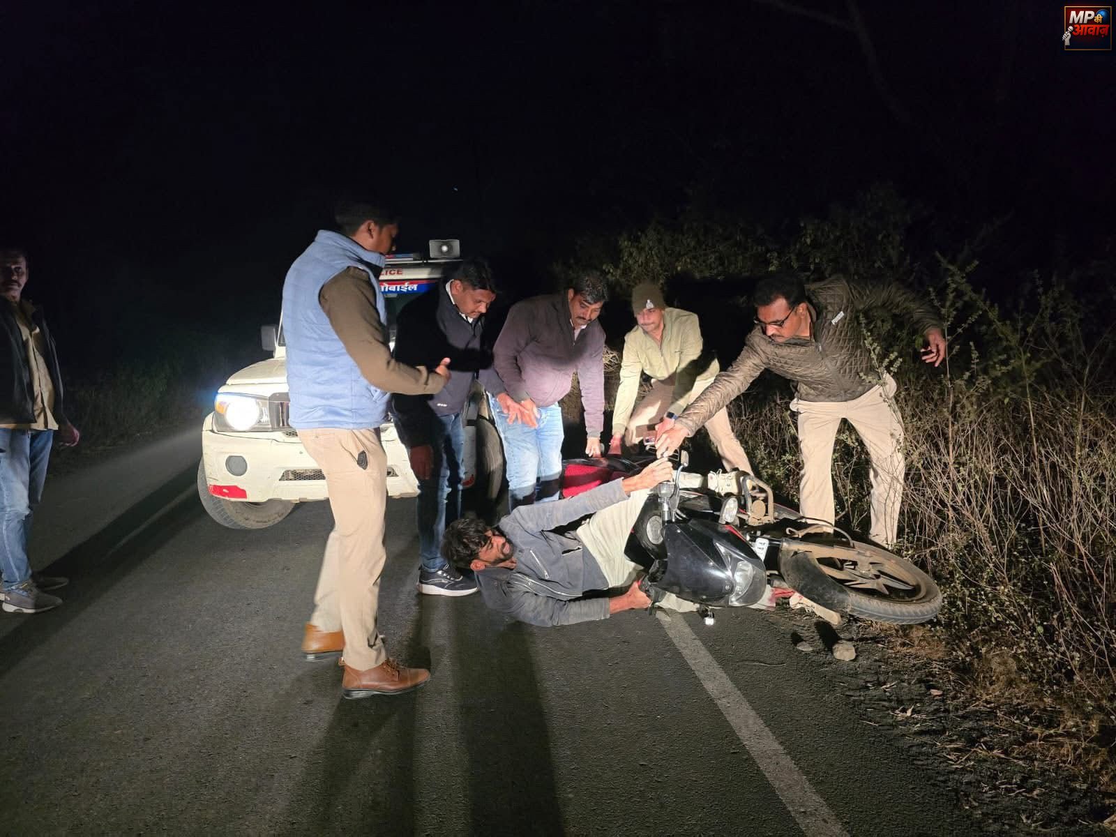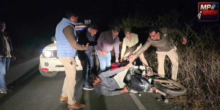 दिनांक 05.01.2026 को पवासा पुलिस को विश्वसनीय सूचना मिली कि इनामी बदमाश अमजद खान पिंगलेश्वर मार्ग पर पल्सर मोटरसाइकिल से निकलने वाला है। सर्कल भ्रमण के दौरान पुलिस को देखते ही आरोपी भागने लगा। पीछा करने पर उसकी मोटरसाइकिल फिसल गई, जिससे वह सड़क पर गिर पड़ा और घायल हो गया।