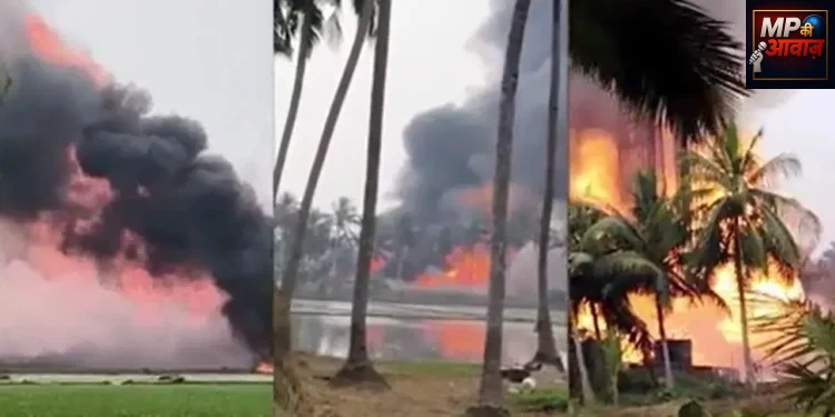 आंध्र प्रदेश के कोनासीमा जिले में ओएनजीसी पाइपलाइन से बड़े पैमाने पर गैस रिसाव हुआ है. मलिकिपुरम मंडल के इरुसमांडा के पास हुए इस भीषण गैस रिसाव से आसपास के गांव भी धुएं की चपेट में आ गए हैं. आग तेजी से फैली. आग लगते ही गांव के लोगों ने ओएनजीसी अधिकारियों को घटना की सूचना दे दी. पाइपलाइन से हुए इस भीषण गैस रिसाव से स्थानीय लोग दहशत में हैं. एहतियात के तौर पर अधिकारियों ने आस-पास के गांवों को खाली करवा लिया है.