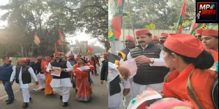 भोपाल: इंदौर में दूषित पानी मामले को लेकर बवाल मचा हुआ है। इस मुद्दे को लेकर विपक्षी पार्टी लगातार हमलावार है। सपा ने भी मोर्चा खोल दिया है। इसी बीच खबर आ रही है कि सपा के प्रदेश अध्यक्ष मनोज यादव अपने कार्यकर्ताओं के साथ मंत्री कैलाश विजयवर्गीय के बंगले पहुंचे हुए हैं और बंगले के बाहर बैठकर विरोध प्रदर्शन कर रहे हैं। प्रदर्शनकारियों ने बंगले के सामने मंत्री विजयवर्गीय की फोटो जलाई और उनके नेम प्लेट पर मिट्टी भी पोती है।