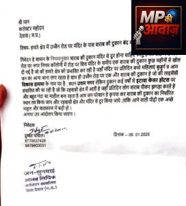 देवास शहर के उज्जैन रोड क्षेत्र में मंदिर के समीप शराब की दुकान खोले जाने को लेकर क्षेत्रवासियों में भारी आक्रोश देखने को मिल रहा है। स्थानीय नागरिकों ने इसे धार्मिक आस्था, सामाजिक मर्यादा और शासन के नियमों का खुला उल्लंघन बताते हुए कलेक्टर कार्यालय में लिखित शिकायत दर्ज कराई है।