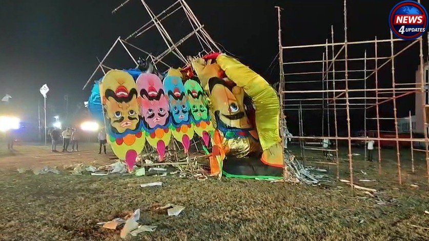 खबर है कि रावण बनाने वाले कलाकार को मामूली चोटें आई हैं। प्रशासन और आयोजकों ने तुरंत स्थिति को नियंत्रण में लिया।
