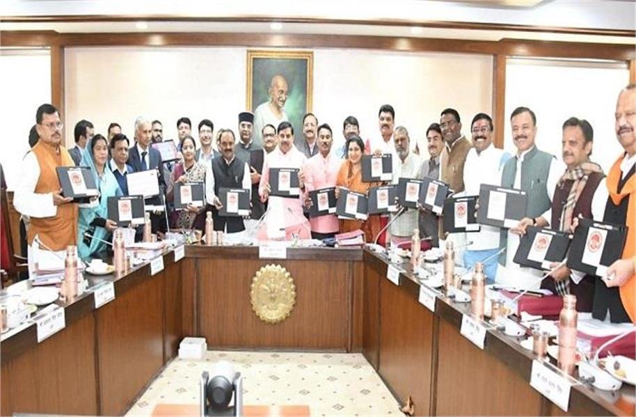 भोपाल : मुख्यमंत्री डॉ. मोहन यादव की अध्यक्षता में मंत्रि-परिषद की बैठक मंगलवार को मंत्रालय में हुई। मंत्रि-परिषद की बैठक में कई अहम निर्णय लिए गए हैं। बैठक में मुख्यमंत्री डॉ. यादव सहित मंत्रि-परिषद के सदस्य बैठक में टैबलेट के साथ शामिल हुए।