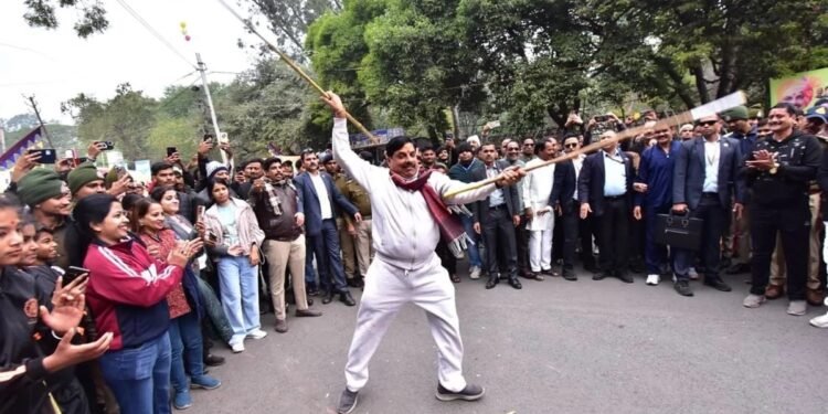 उज्जैन। मध्य प्रदेश के मुख्यमंत्री डॉ. मोहन यादव ने आज उज्जैन में आयोजित राहगीरी आनंदोत्सव में लाठियां घुमाकर कलाबाजी दिखाई। उनकी इस कला को देख वहां मौजूद सभी लोग तालियां बजाने लगे। रविवार सुबह कोठी रोड पर आयोजित उत्सव में सीएम सहित बड़ी संख्या में शहर के लोग शामिल हुए।