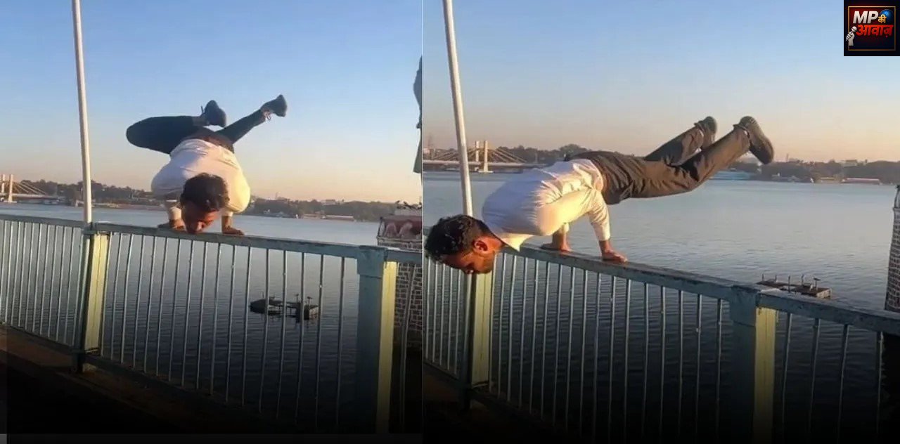 वायरल वीडियो में युवक VIP रोड स्थित राजा भोज की मूर्ति के सामने लगी रेलिंग पर अपने हाथों के सहारे उल्टा लटककर खतरनाक स्टंट करता नजर आ रहा है। सड़क पर तेज रफ्तार वाहनों की आवाजाही के बीच किया गया यह स्टंट न सिर्फ युवक की जान के लिए खतरा था, बल्कि किसी भी बड़े हादसे का कारण बन सकता था।