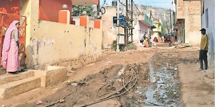 वार्ड 12 में अमृत योजना की पाइप लाइन पर खतरे की घंटी