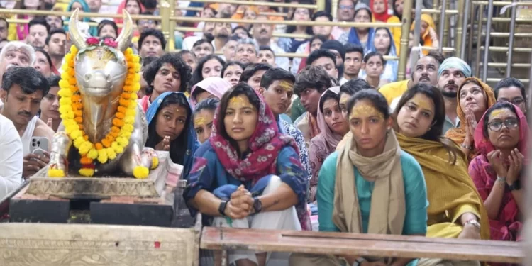 उज्जैन। भारतीय महिला क्रिकेट टीम की खिलाड़ी आज बाबा महाकाल के दर्शन करने पहुंची। हरमनप्रीत कौर, स्मृति मंधाना, प्रतिका रावल, हरलीन देयोल, दीप्ति शर्मा, रेणुका सिंह ठाकुर, अरुंधति रेड्डी, राधा यादव, श्री चरणी सहित अन्य खिलाड़ियों और कोचिंग टीम के सदस्यों ने बुधवार तड़के 4 बजे भगवान महाकाल की भस्म आरती के दर्शन किए।